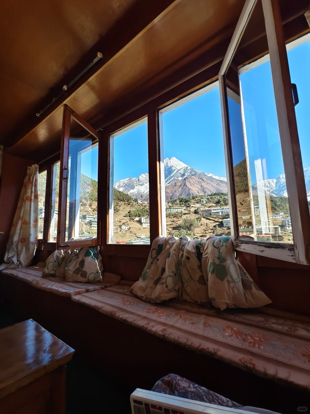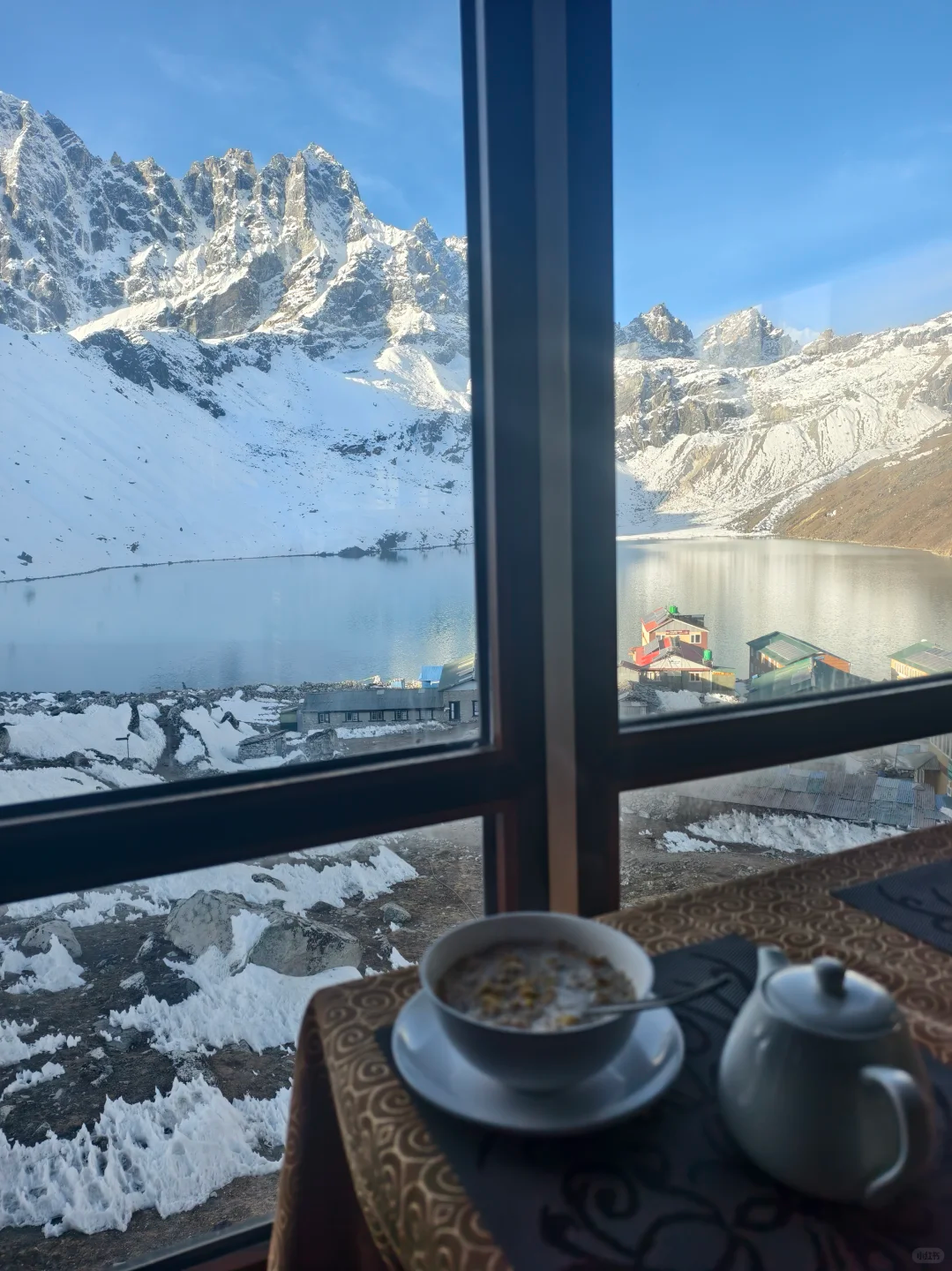 在Dingboche的窗前看雪山剪影