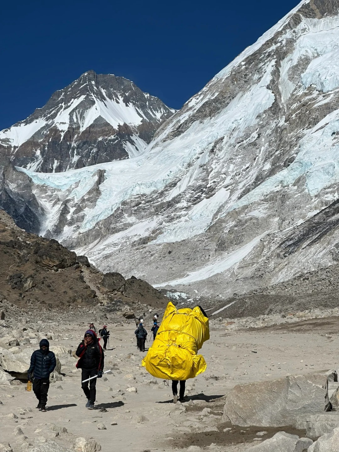 我们将在黎明时分离开Lobuche,当晨曦照亮山脚时,整个山谷慢慢亮起金色的光芒。我们将穿越昆布冰川前往Gorak Shep。Gorak Shep是一个干燥的沙质湖床,有一个不祥的名字(意思是 "乌鸦的墓地")。在昆布冰川末端的巨石堆和碎石路中行走时需要特别小心。