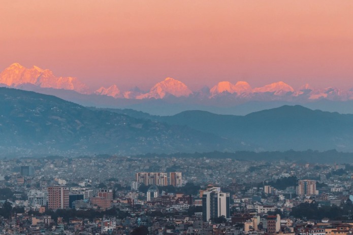 当飞机掠过加德满都的上空