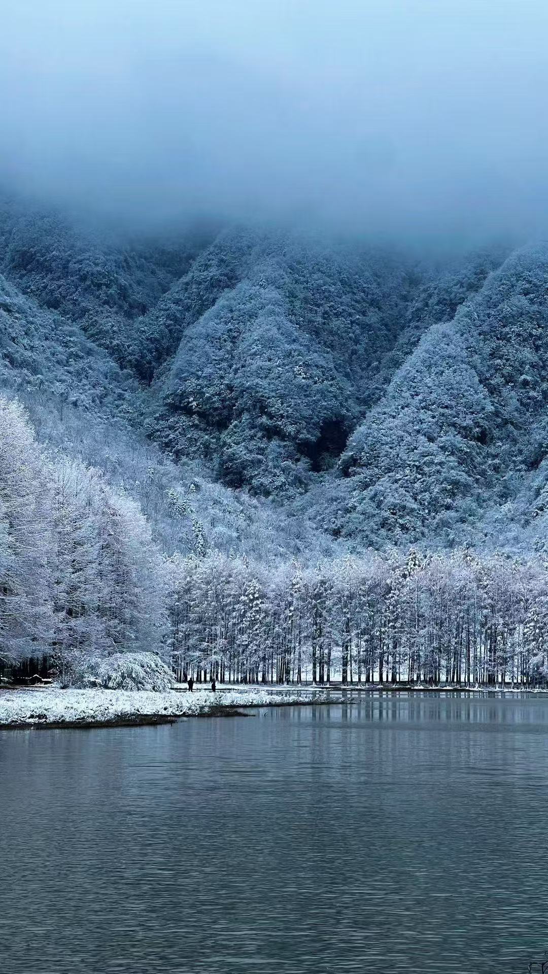 冬天的龙池湖完全是一副天然的山水画卷