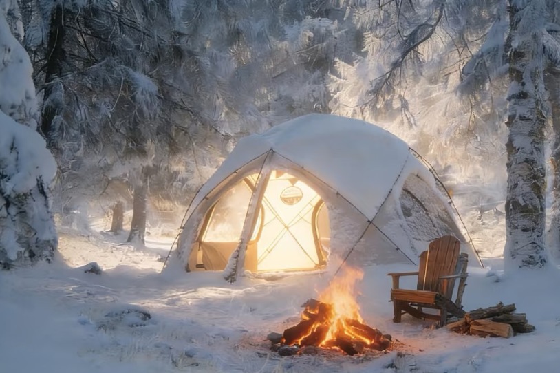 听着歌曲 听着帐篷外雪簌簌落下的声音