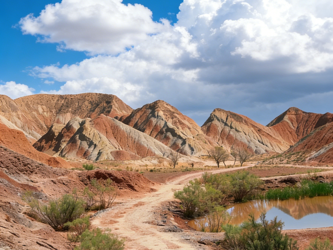 【秘境丹霞】形成于白垩纪至第三纪时期(距今约 1.4-1.5 亿年),是以赤红为主色调,兼杂赭黄、橙红、灰白、褐橙等多种色彩,层理清晰如大自然调色盘。这片被时光遗忘的赤色秘境,因其原始的野性之美和便捷的地理位置是兰州树屏丹霞国家地质公园的核心片区之一,也是国内距离大城市最近的丹霞地貌群之一。由于毗邻黄河水系和当地水库,形成独特 "水映丹霞" 景观,也是张掖七彩丹霞 "野生平替"~