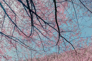 漫山遍野的野桃花悄悄绽放