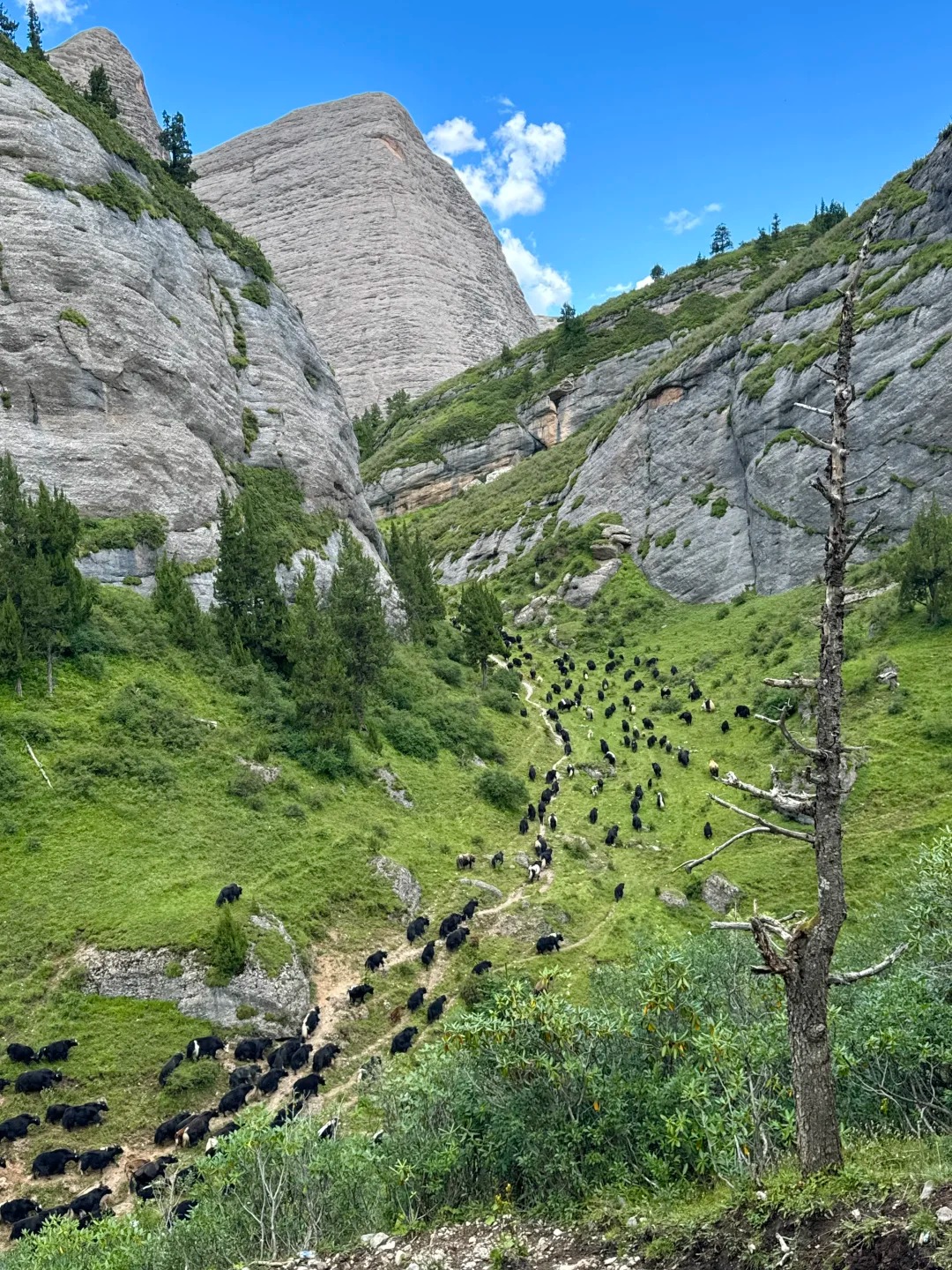 营地早餐过后,8:00拔营出发,今日要翻越约2~3个大垭口,体能消耗较大,约下午17:00左右抵达扎尕那景区,到达景区后乘坐车辆返回卓尼。