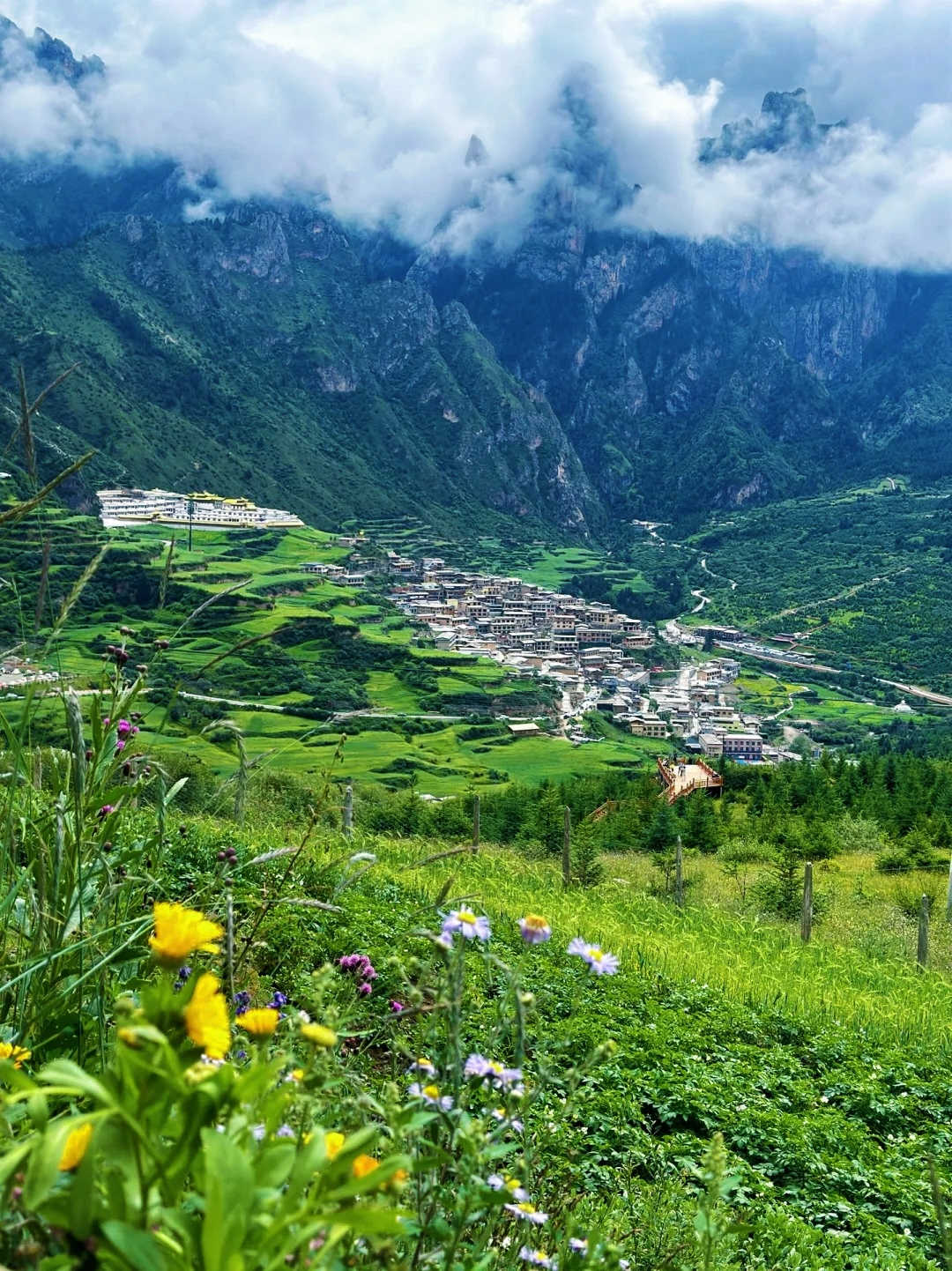 群山如虔诚的僧侣将你环抱