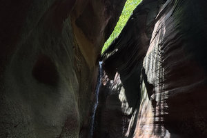 一线天"峡谷,是黄土高原罕见的丹霞地貌杰作,犹如天神挥斧劈开的赤色长廊;1.2亿年前河湖沉积的红色砂砾岩,经风雨雕琢形成千仞绝壁; 最窄处仅容侧身通过的"天缝",抬头可见"金光穿孔"的日照奇景;岩壁层理如火焰燃烧,雨季时瀑布从赭红色崖顶飞泻而下,"将军岩"似披甲武士镇守峡谷, "佛掌峰"五指分明的巨型岩柱