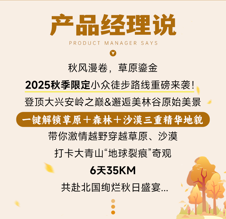 下午我们将深入探索大青山,并将在金秋草原草甸中留下足迹。