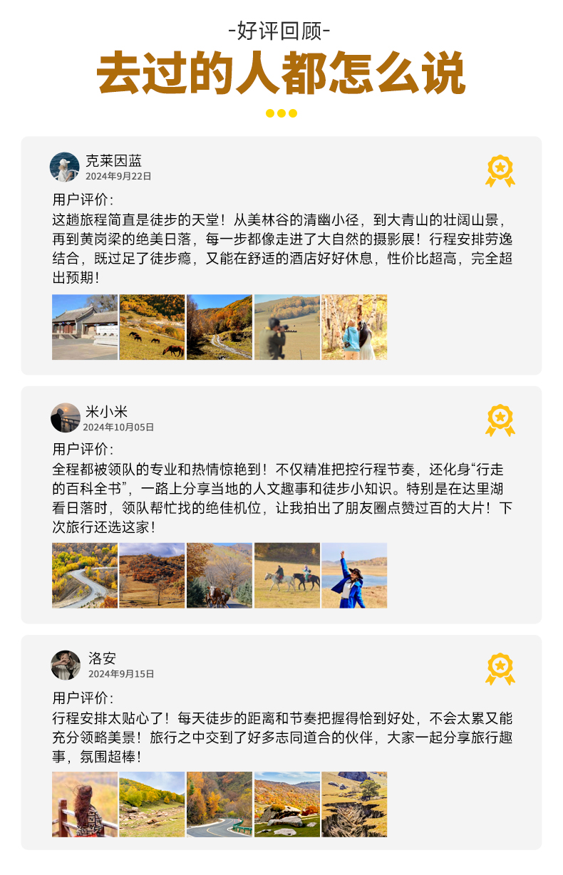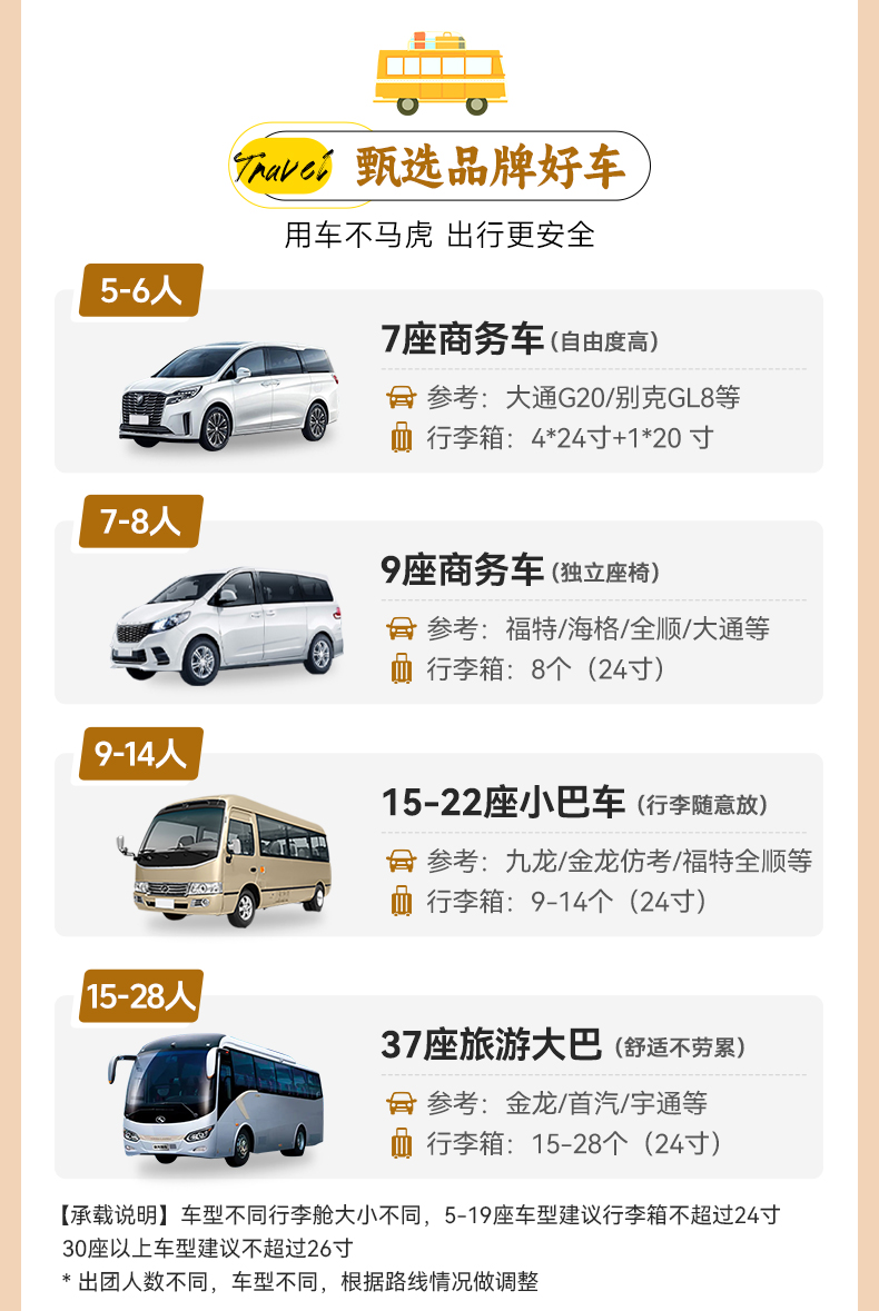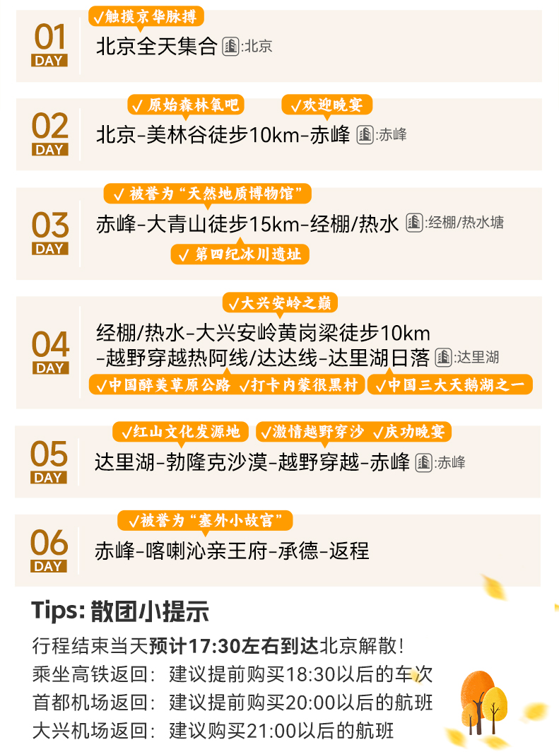 注:行程内时间都为计划时间,如遇暴雨、堵车等情况,具体行程由领队安排。