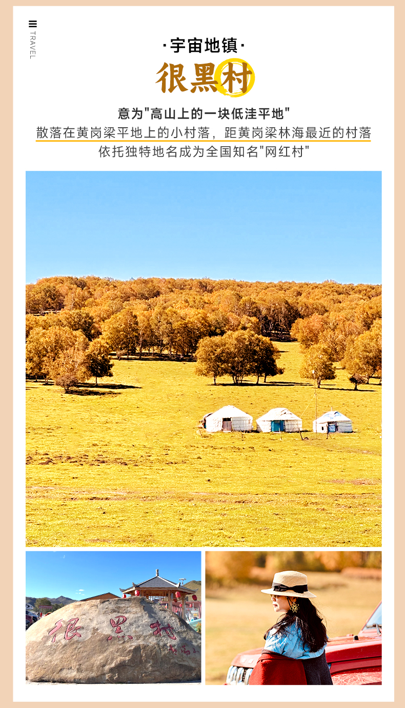 早餐过后,乘车前往【黄岗梁】( 车程约40min,约36km)开启我们一天的徒步旅程,起点处还可以偶遇【很黑村】,村落位于内蒙古克什克腾旗东北部,是散落在黄岗梁南麓下沉山谷河流冲击而成的低洼平地上的几个小村落,也是距黄岗梁林海最近的村落!随后一起徒步打卡【大兴安岭之巅—黄岗梁】(10km),黄岗梁境内山势高峻,自然景观丰富多样。景观多为落叶松或云杉林,树木生长旺盛,森林气氛浓郁,是塞北地区罕见的天然森林群落。还有白桦、山杨丛林景现,沿自然起伏地势分布。白华林、云杉林、阔叶松与开阔的草原相互呼应,构成了层次丰富,空间开合变化,远景、近景、中景搭配的自然景观。