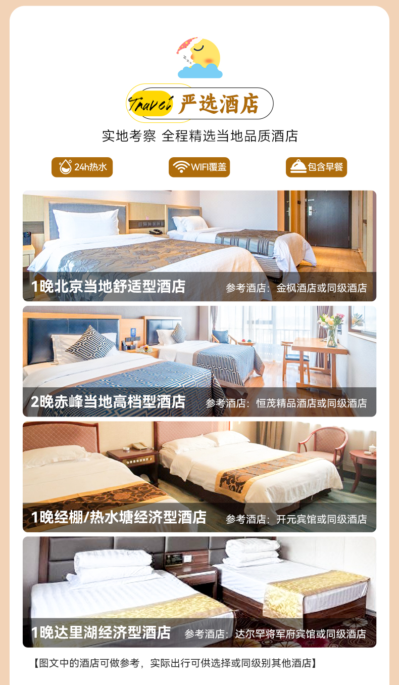 游玩尽兴后,乘车前往【赤峰】( 车程约1.5h,约120km)当地酒店入住。今晚我们将举行【庆功宴】,总结徒步所获,把疲惫和喜悦都揉进这温馨的夜晚!