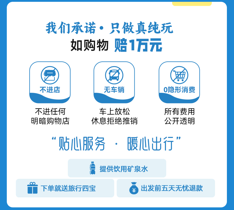 10、出游过程中,如产生退费情况,以退费项目旅行社折扣价为依据,均不以挂牌价为准。
