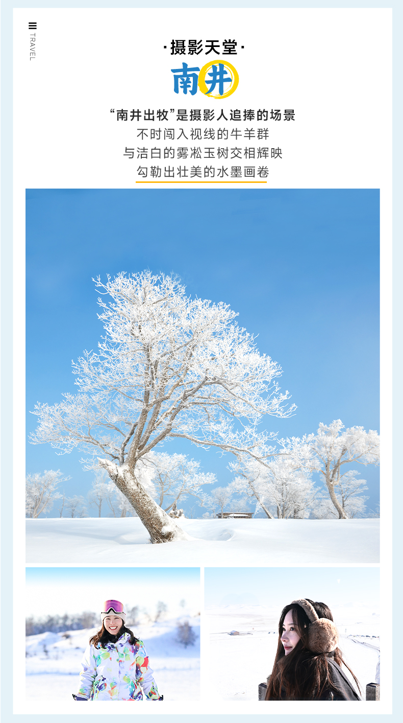 日落时分在【鹰窝沟】邂逅一场雪原日落,落日的余晖慢慢消散,莽莽雪原尽在眼前,静赏云的层次,山的层次,雪的层次,树的层次,光的层次震撼的大场景。幸运的话,还能看到牧民驱赶羊群、牛群回家,好一幅雪景人家图~