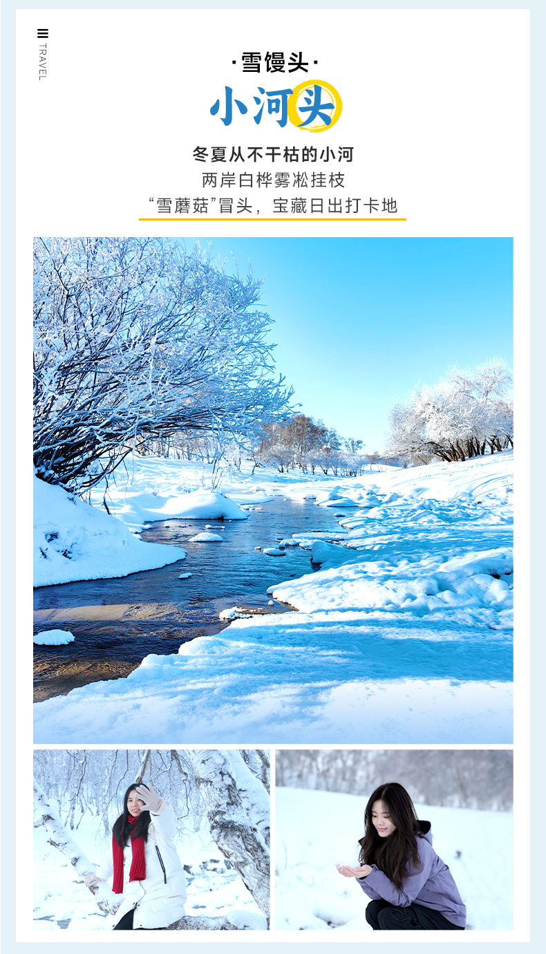 今天早起,乘坐越野车前往【小河头村】看日出,冬日的小河头依然有活水流淌,冰上有河柳灌木被冰雪覆盖,河水鼓泡冻成的冰花是这里的一绝,早晚雾气升起,极易形成雾凇。在这里感受冬季草原日出的壮丽,你可以看到雪中挺拔的白桦林,蜿蜒河流中洁白的雪馒头,小河头村风光、羊群出牧,你可以用手中的相机,定格冬季坝上的雪域风光。拿出准备好的保温杯,挑战【泼水成冰】,小伙伴们用手机拍下这神奇的一刻。