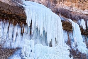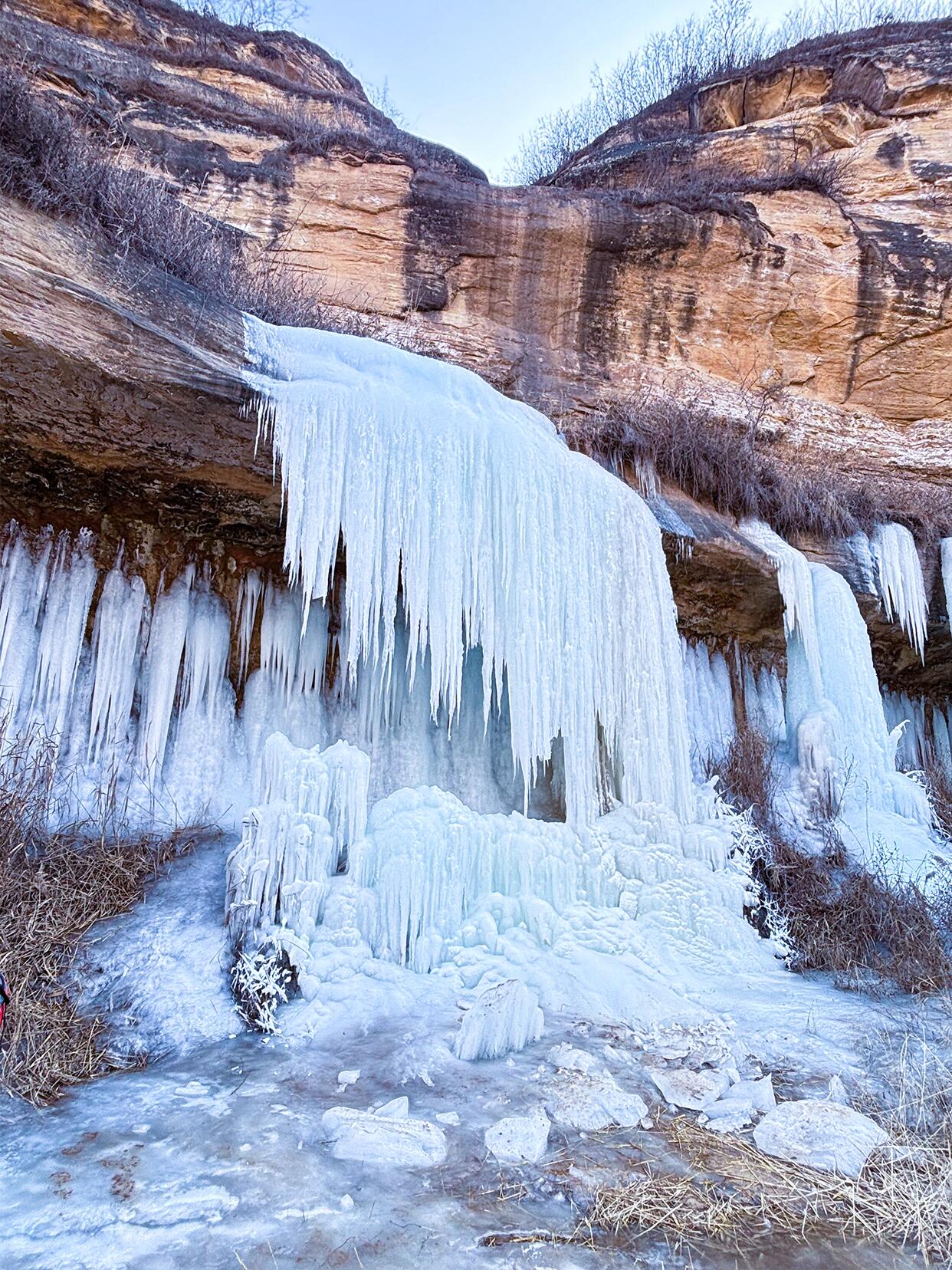 甘肃庆阳黑老锅峡谷的泉水凝结成冰