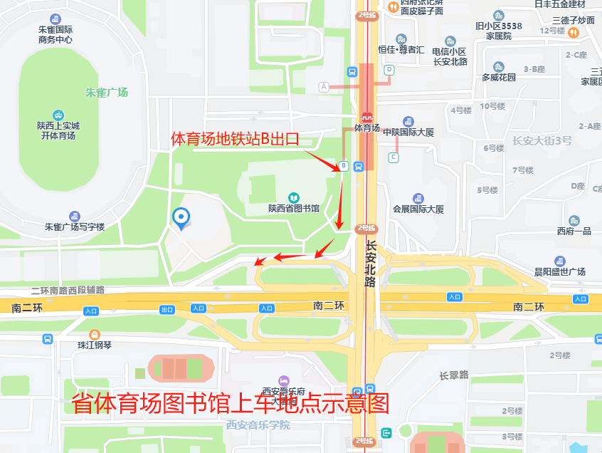 ▼集合地点1:陕西省体育场地铁站B口西南200米